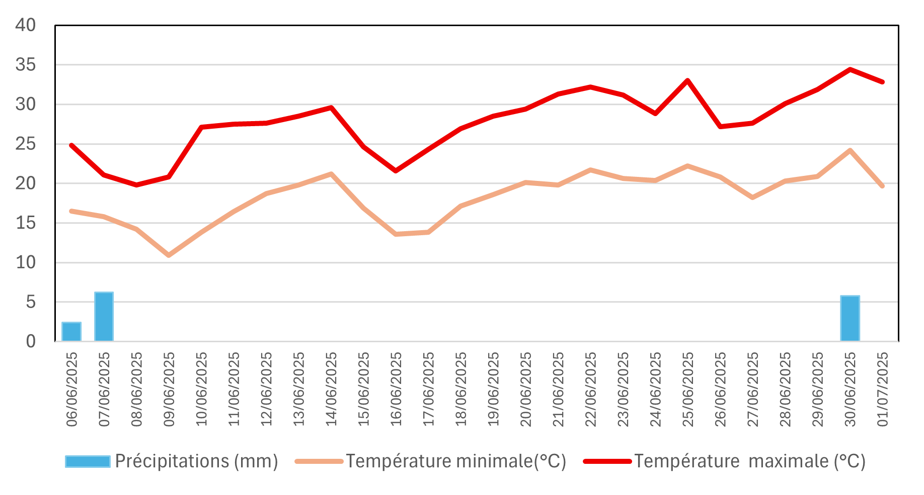 Source : Info-Climat – Juin et juillet 2025 – Station située à environ 15 km du rucher
